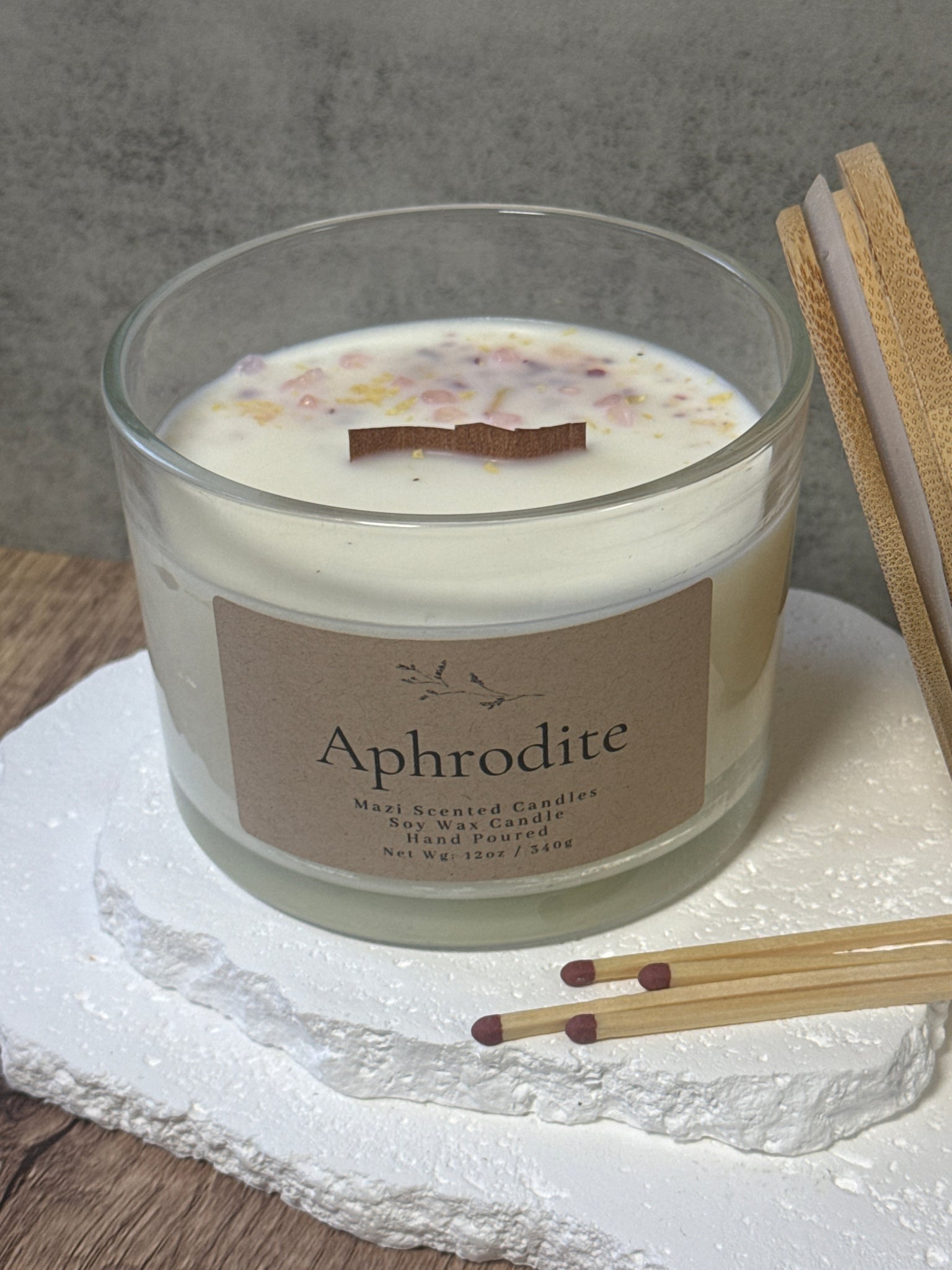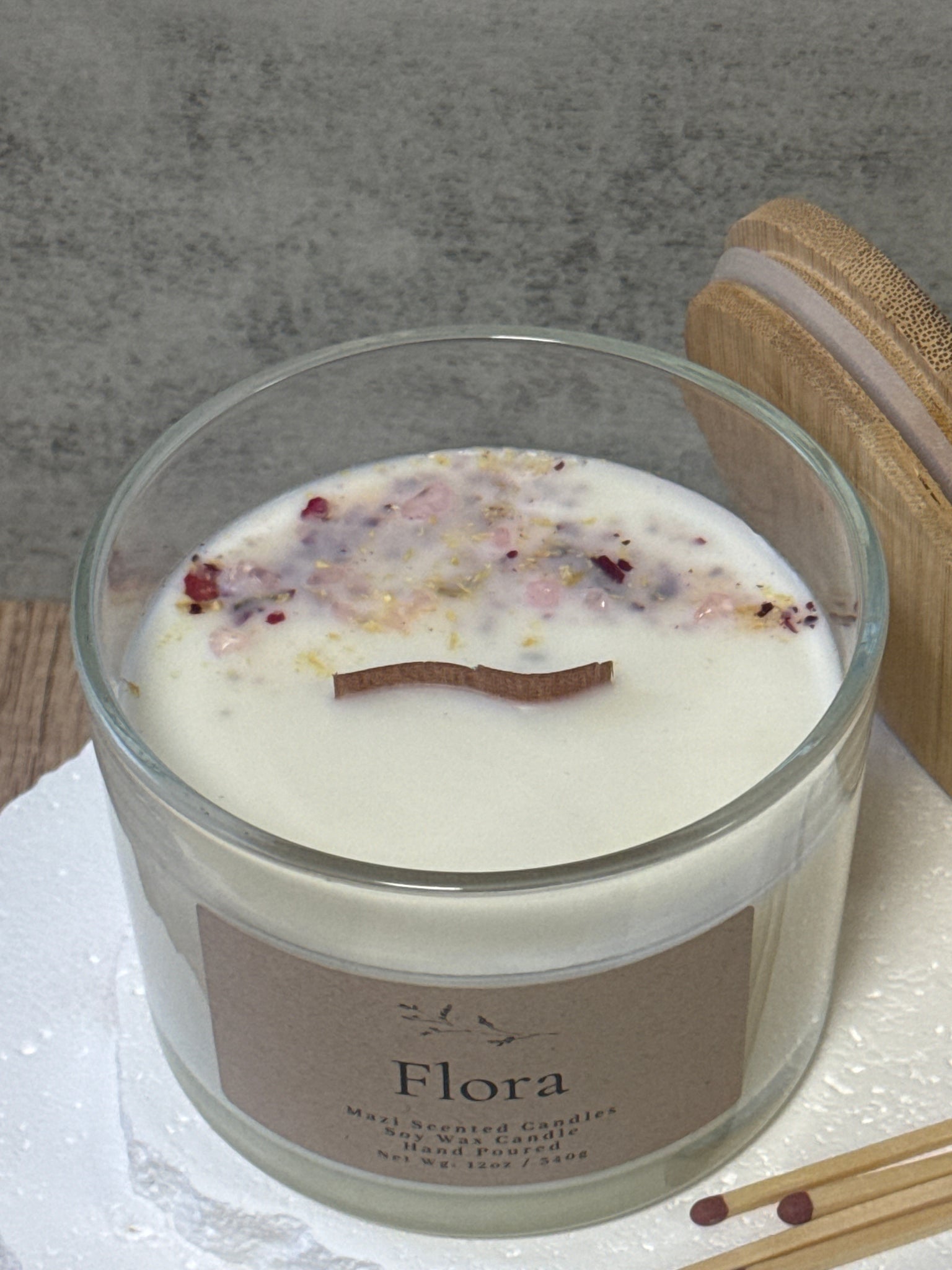 Every candle is finished with rose quartz along with rose and jasmine petals, adding a romantic, soothing touch and making each piece feel uniquely special. Rose quartz is often associated with love, peace, and emotional warmth, making these candles perfect for relaxation rituals and meaningful gifting.