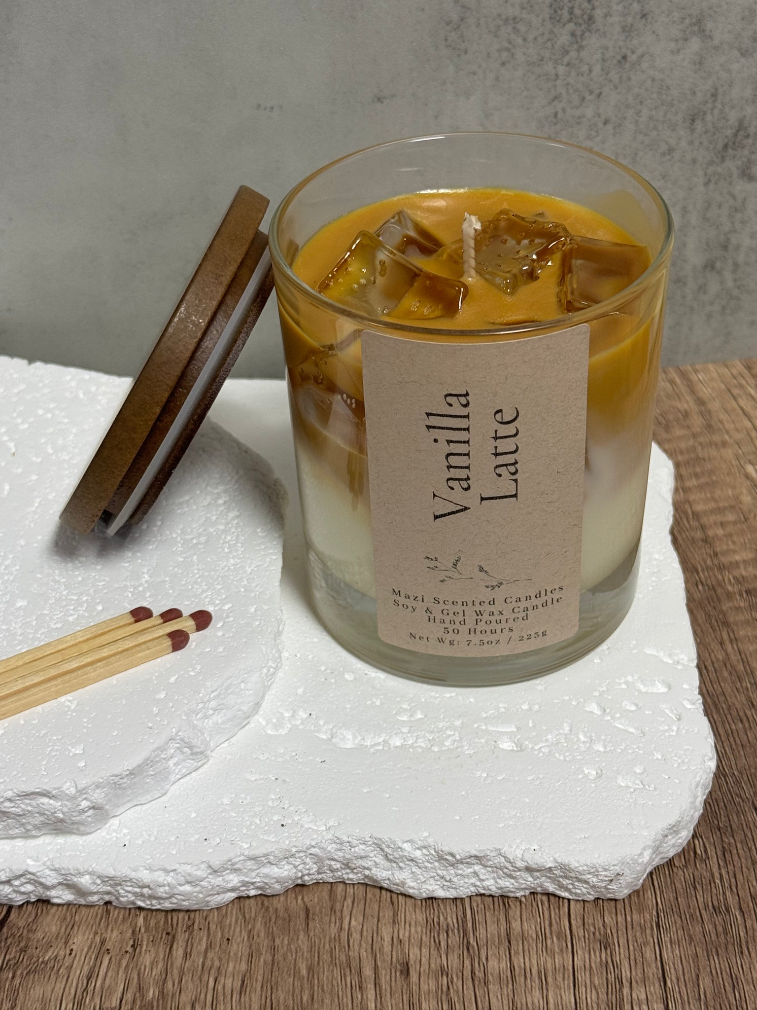 Iced Vanilla Latte is a cozy café-inspired scent that blends creamy sweetness with rich coffee warmth. Designed to look like a chilled latte, this candle is made with soy wax and detailed with gel wax “ice cubes” for a fun, eye-catching finish that customers love to display.